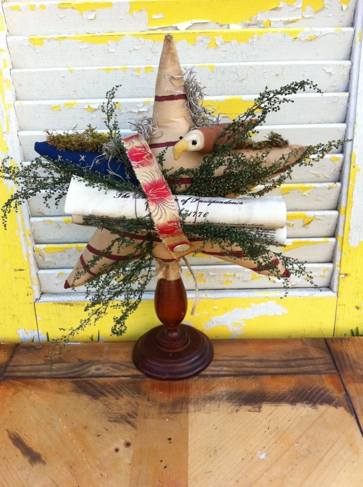 The eagle is perched to the side of the star. His wing is sewn on. The star is de...